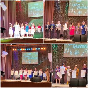 Педагоги и учащиеся Билибинской школы искусств, так же поздравили учителей творческими номерами на вечернем концерте в ДК, где прошло официальное награждение «Почетными Грамотами» и «Благодарностями».